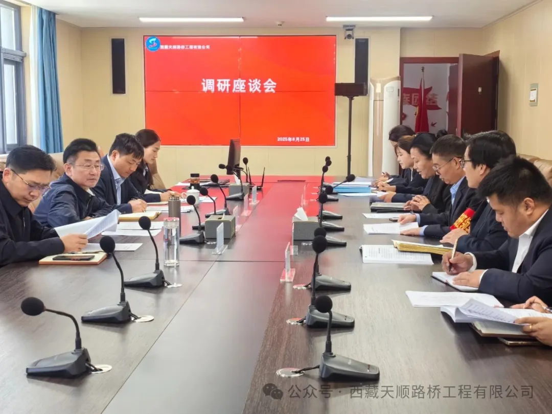 2025年6月25日上午,西藏交通发展集团有限公司党委委员、董事、副总经理张永生带队,交发集团办公室副主任丁新峰、党建工作部副经理邢伟亚、机关纪委副书记郭晓菲等人员陪同,赴天顺公司开展对公接待工作调研并召开座谈会,经天顺公司党委书记普布贵吉通知工作安排,天顺专职副书记王军帅,纪委书记德吉旺姆,财务负责人史凡及行政服务中心副经理巴桑旺堆、副经理郑国花参加会议。