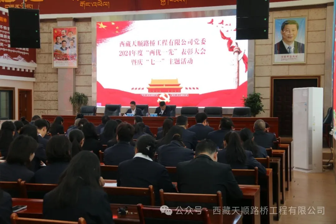 2025年7月4日,天顺路桥工程有限公司党委隆重举行“庆七一”主题党日活动,热烈庆祝中国共产党成立104周年。公司党委书记、董事长普布贵吉委托专职副书记王军帅同志主持,公司副总经理索朗及机关全体干部职工积极参与。